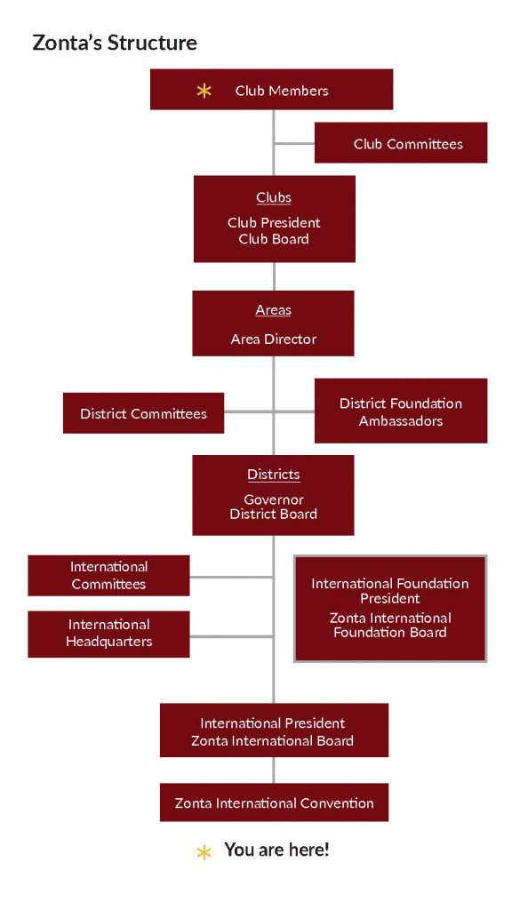 - Zonta International er delt i 31 distrikter. Distrikterne ledes af en Governor.